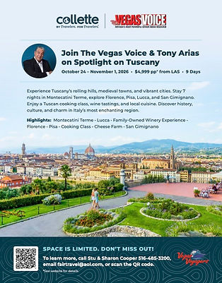 Donning his macrame belt two-piece bell-bottom Swarovski Crystal studded suit, Tony sings from the 1970's songbook.